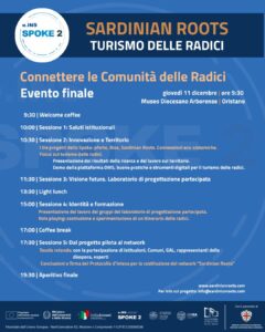 Giovedì 11 dicembre 2025, il progetto “Sardinian Roots – Turismo delle Radici” terrà il suo evento conclusivo presso il Museo Diocesano Arborense di Oristano. L’evento, che si svolgerà dalle 9:30 alle 20:00, sarà un’occasione fondamentale per presentare i risultati della ricerca, gli strumenti digitali sviluppati e le prospettive future per un settore strategico dell’economia sarda. Il progetto “Sardinian Roots”, parte dello Spoke 2 – Turismo dell’Ecosystem of Innovation for Next Generation Sardinia (e.INS) e coordinato dall’Università di Cagliari, è finanziato dal PNRR – Missione 4,